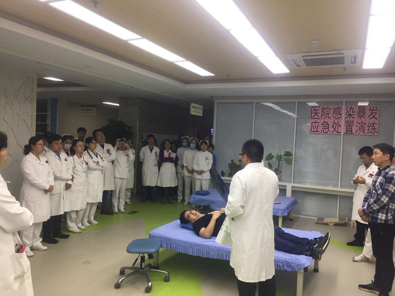 八里庄第二社区卫生服务中心为检验和提高临床医务人员发现呼吸道传染病的能力,以及医院应急系统对突发公共卫生事件应急处置能力,有效保障医疗质量及安全,综合病房联合康复病房、护理部、院感科、护工组于2018年10月15日下午,在康复大厅组织开展呼吸道传染病应急演练。由综合科张向东医师模拟可疑肺结核患者,康复科主任秦海模拟患者家属,接诊医生为综合科主任王冬。接诊医生详细询问流行病史及症状,对病情进行分析、诊断后初步怀疑为肺结核,并将患者进行单独隔离,同时按照处置程序,上报给疾控科、医务科、院领导;然后向家属交待患者目前病情,建议转往结核病研究所进一步诊治,并向患者家属及医护人员讲述肺结核防护知识及重要性。最后八二中心张桂云副主任对此次演练进行了总结,要求各科室医护人员熟练掌握相关知识及应急处置流程,提高自身敏感性,确保遇到此类突发公共卫生事件,能将疫情危害控制在最低限度,保障医疗质量及医疗安全。同时要求各临床科室将穿脱隔离衣纳入到2018年重点业务培训中,并作为常规培训考核内容,每年对此进行考核,确保各科室医护人员熟练掌握。