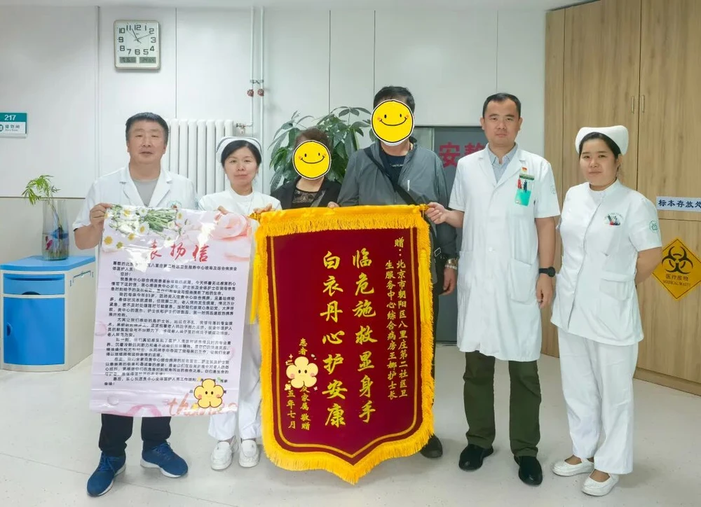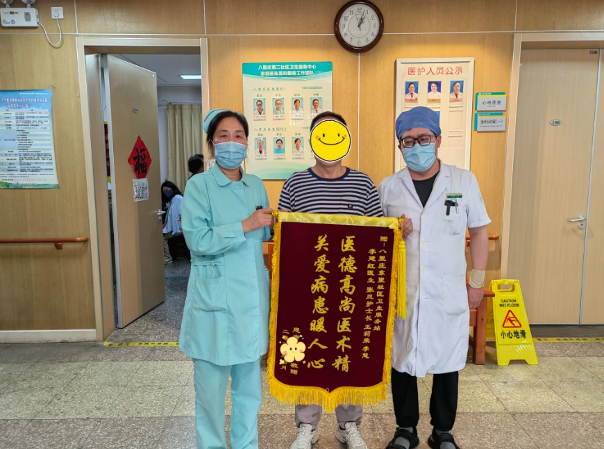 八里庄东里社区卫生服务站家庭医生李建红接到签约居民王先生腹痛电话求助后,立即携急救箱上门巡诊治疗,并给予持续健康指导。“医生治好了我的病,更温暖了我的心。”患者送来的锦旗成为医患间互相信任、双向奔赴的见证。